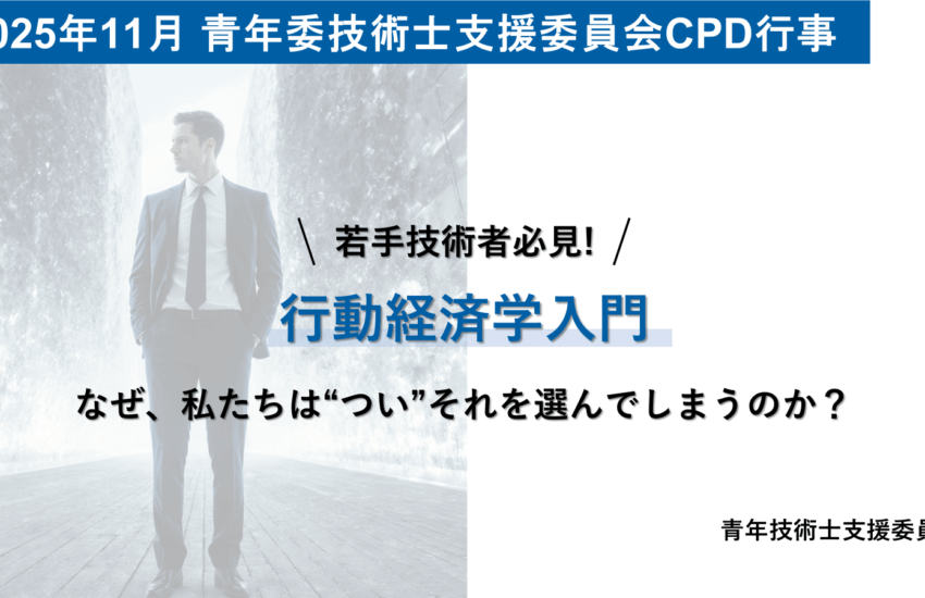 • 【開催案内】11月CPD行事「行動経済学で切り拓く技術者の新しい価値創出」